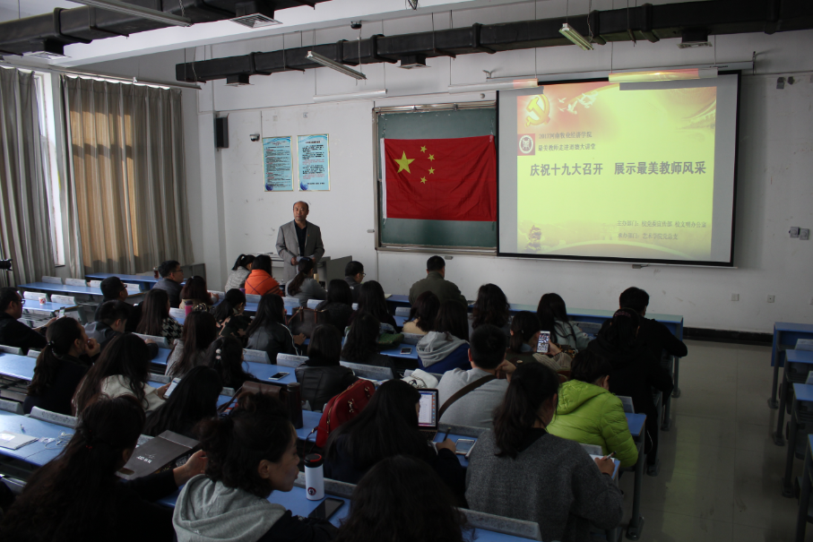 为进一步弘扬立德树人、爱岗敬业、为人师表、严谨笃学的高尚师德,营造尊师重教的浓厚氛围,发挥学校“最美教师”的示范引领作用,用身边的先进典型激励鼓舞和教育身边人,为庆祝党的十九大胜利召开营造良好的宣传舆论氛围,根据学校庆祝党的十九大召开总体宣传活动安排要求,beat365中文官方网站于11月2日下午,在龙子湖校区1号教学楼304举行了“庆祝十九大召开 展示最美教师风采”--“最美教师”走进“道德讲堂”活动。会议活动由院党总支书记王在钦主持。