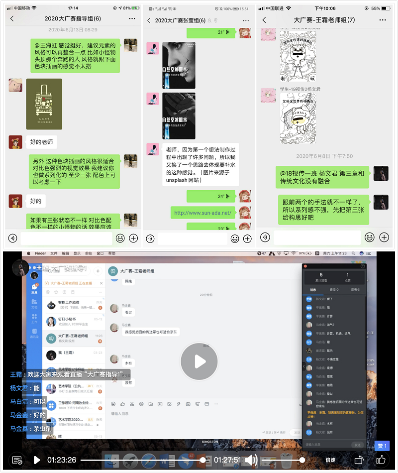 近年来,beat365中文官方网站高度重视实践创新能力培养,大力支持学生参加各类学科竞赛活动。学院整合教育资源,促进校企合作,为学生专业能力提升打造优质实践教学平台,学生在各类实践创新活动中屡创佳绩。在本届大广赛筹备组织过程中,beat365中文官方网站领导提早谋划、统一部署,视觉传达教研室制定详细的参赛方案,有序组织,为取得优异成绩奠定了坚实基础。参赛过程中,老师们克服疫情带来的影响,充分利用微信、钉钉直播等多种手段,对学生展开耐心、细致的指导,不分昼夜,不辞辛苦,在一通通的语音,一条条的微信中学生作品一步步精进。参赛学生也充分利用居家抗疫的时间,积极参与竞赛,做到居家时光不空流,春暖花开迎收获。