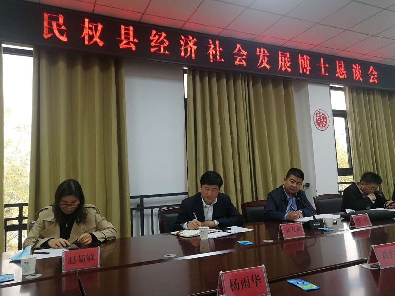 成立大会会后宗建伟和杨雨华博士参加了民权县经济社会发展博士恳谈会,首先民权县副县长张士彬介绍了民权县的发展和产业结构状况,建议博士团成员发挥各自的专业优势和团队优势,建言献策。其后民权县农业农村局局长张友永主要从湿地、林业、农田、农产品加工等方面发展现状、取得的成绩、面临的问题进行了详细介绍。最后,在座谈会上,两位博士结合民权县实际情况指出,以生态为内在线索,从湿地水生态保护到湿地生态文化旅游的建构与认同策略,从民权县农林水田到生命共同体理论与现实问题等不同角度,探索和挖掘与民权生态旅游、古黄河文化旅游的相关专业问题,为加快推进民权规划建设、乡村振兴等方面提出意见和建议。最后,两位博士期待河南牧业学院beat365中文官方网站与民权县在教育、科技、农业、人才培训、文化、旅游等方面开启校地合作,同时谋求更深层次的合作和交流。