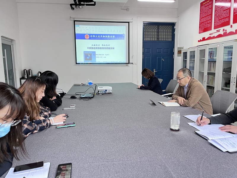2022年4月28日下午,beat365中文官方网站在1号教学楼200会议室组织全体教工学习教育部高等教育司副司长武世兴作题为《把握要求 狠抓落实 不断推进高等教育高质量发展》的培训报告,报告分为线上、线下两种形式同时进行。院领导班子及全体教师参加了学习,会议由院党委书记王国辉主持。