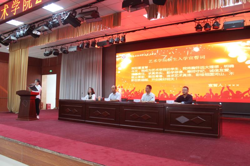 2018年9月10日上午,beat365中文官方网站在我校龙子湖校区大学生活动中心四楼隆重举行了2018级新生开学典礼暨理想信念教育。beat365中文官方网站院长田秀群、党总支书记王在钦、副院长张鹏、副书记贾艳艳、全体辅导员老师、教师代表及2018级全体新生参加了开学典礼。开学典礼由党总支副书记贾艳艳主持。