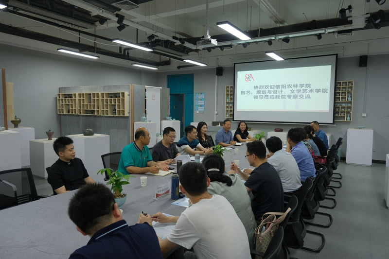 2021年6月2日,信阳农林学院园艺、规划与设计、文学艺术专业领导、老师来beat365官网考察交流。交流座谈会在龙子湖校1号教学楼122室举行,院党委书记王在钦、院长张鹏、副院长田志涌、教学办副主任王亚昕,环境设计专业、园林专业、视觉传达专业教研室以及艺术基础教研室主任参加了座谈会。会议由院长张鹏主持。