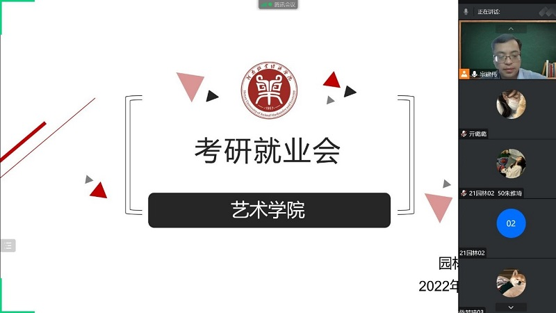 为引导学生树立正确的学习观、实践观和就业观,营造积极向上的学院风气。2022年11月10日下午,beat365中文官方网站园林专业通过腾讯会议的形式举办了考研就业促进会。本次促进会由教研室主任左金淼老师主持,宗建伟博士担任主讲,园林专业2019级、2020级、2021级和2022级的全体学生参加了此次会议。