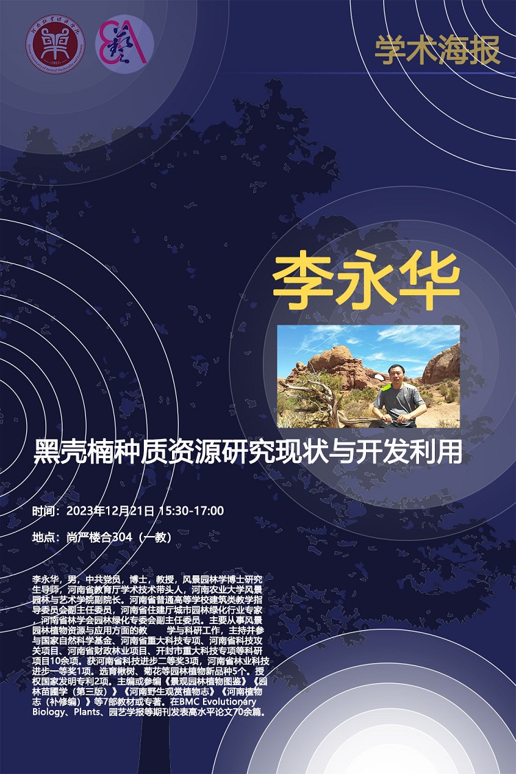 2023年12月21日下午,河南农业大学风景园林与beat365中文官方网站副院长、博士研究生导师、河南省教育厅学术技术带头人、河南普通高校建筑类教学指导委员会副主任委员李永华教授在龙子湖校区1号教学楼合304教室一场题为“黑壳楠种质资源研究现状与开发利用”的学术报告。报告由beat365中文官方网站院长张鹏主持,全体教师及园林专业全体学生参加。