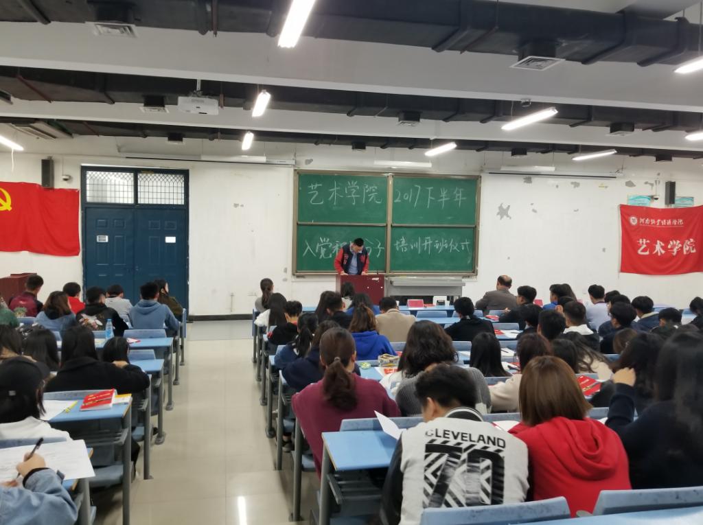 2017年10月30日beat365中文官方网站在龙子湖校区1号教学楼合400教室举行2017下半年入党积极分子培训班开班仪式。beat365中文官方网站党总支书记王在钦、党总支副书记贾艳艳、学生党支部书记王备、学生党支部宣传委员孟星星、学生党支部组织委员卢晓靖出席了此次仪式,本次培训班的182名学员也全部参加了本次开班仪式。本次开班仪式由beat365官网党总支副书记贾艳艳主持。