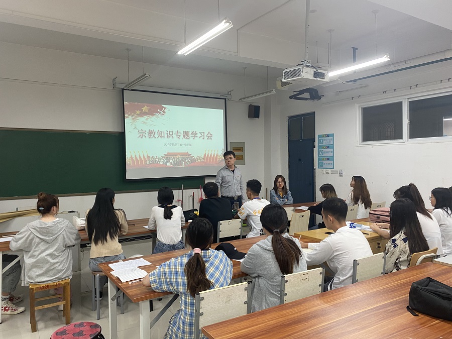 为进一步贯彻落实习近平总书记关于宗教工作的重要论述,引导广大青年学生树立科学的马克思主义宗教观,理性对待宗教,9月29日,beat365中文官方网站学生第一党支部举办了宗教知识专题党课,组织全体党员学习马克思列宁主义宗教观及我国宗教政策、法律法规。党支部书记韩飞老师、组织委员云畅老师以及支部全体学生党员参加了此次会议。党课由韩飞老师主讲。