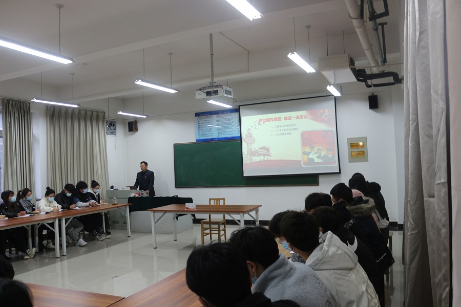 为进一步贯彻落实党的十九届五中全会精神,12月10日下午,校党委副书记李波在龙子湖校区2号教学楼C324教室以《贯彻强军思想,建设一流军队》为题讲授思政课,beat365中文官方网站党委副书记王友峰、院团委副书记韩飞,50余名学生党员和学生干部一起聆听了思政课。