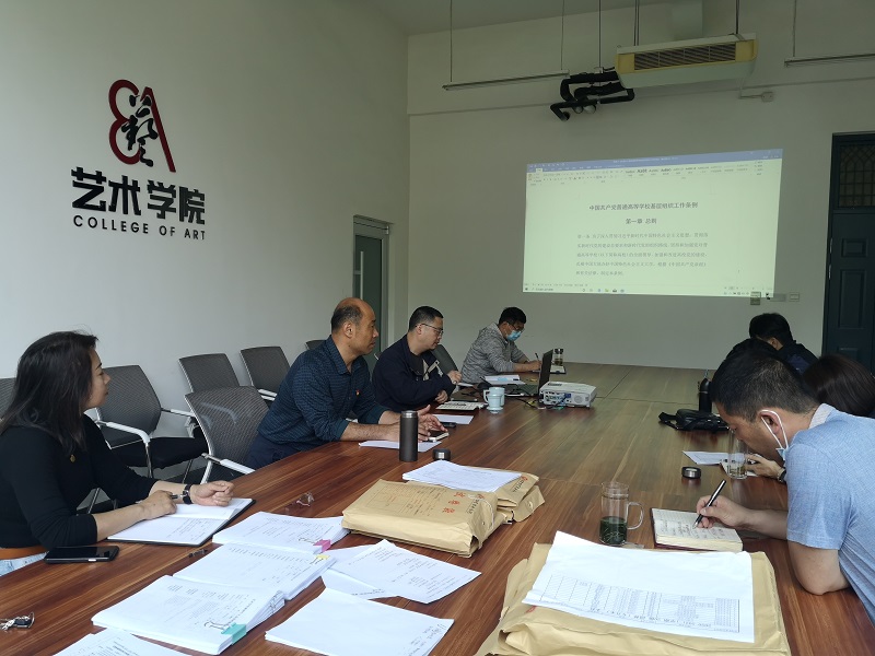 会上,王在钦首先带领大家观看了4月中旬习近平总书记到清华大学考察时的视频材料,接着全文学习了新修订《中国共产党普通高等学校基层组织工作条例》(以下简称《条例》)。王在钦讲到,习近平总书记在清华大学考察时,第一站视察了美术学院、这让我们很振奋,随后与师生代表座谈时发表的重要讲话更让我们倍受鼓舞。习近平指出,要发挥美术在服务经济社会发展中的重要作用,把更多美术元素、艺术元素应用到城乡规划建设中,增强城乡审美韵味、文化品位,把美术成果更好服务于人民群众的高品质生活需求。为我们进一步指明了育人方向,下一步我们将在人才培养目标的定位上、在课程设置上、在课程思政元素的挖掘上、在毕业设计的真题真作上等各方面进一步下功夫,为河南的经济社会发展、为我国建设富强民主文明和谐,特别是“美丽的”社会主义现代化强国培育更多的专业人才。