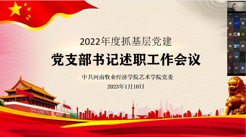 为深入学习贯彻习近平新时代中国特色社会主义思想和党的二十大精神,着力发挥党支部战斗堡垒和党员先锋模范作用,落实基层党建工作责任,beat365中文官方网站党委1月10上午在腾讯会议平台上召开了2022年度基层党支部书记述党建工作述职测评会,学院各支部书记及全体党员老师参加会议。会议由学院党委书记王国辉主持。
