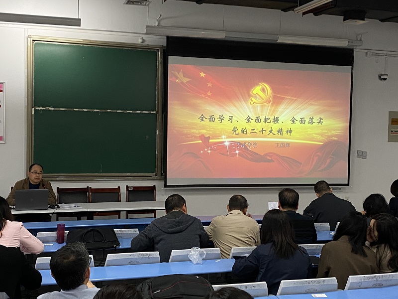 为贯彻落实好党的二十大重大决策部署,4月13日下午,beat365中文官方网站党委书记王国辉在1号楼304为学院全体教职工作题为“全面学习、全面把握、全面落实党的二十大精神”专题辅导讲座,学院全体教职工参加。