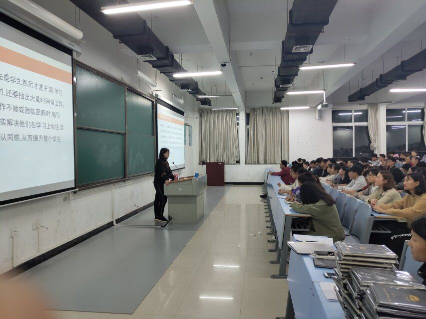 开班仪式结束后,青马课正式拉开序幕,第一讲是由韩飞老师主讲,主题为“迎接美好的明天”,这次培训让同学们对大学有了重新的定义,对大学生的学习、生活有了全新的认识;第二讲,是由校党委宣传部翟浩辰老师主讲,主题为 “新闻写作与新媒体运营”,提高了学生的工作能力,为学生干部后续工作进行起到了推动作用;第三讲是由优秀毕业生常浩鹏同学主讲,主题为“加入学生组织的意义与心得”,坚定了全体学生干部继续坚持下去的决心,为团学会干事打了一剂强心针;第四讲,是由王备老师主讲,主题是“如何做好一名合格的学生干部”分享了许多宝贵经验;第五讲,由卢晓靖老师主讲,主题是“学生干部礼仪与素养”;第六讲,由孟星星老师主讲,主题是“学生干部常见的心里压力与情绪管理”;第七讲,由王霜老师主讲,主题是“学生干部应具备的基本素质”,让学生干部更好的认清了自己的责任与义务;第八讲,由李好敏老师主讲,围绕 “学生干部工作执行力的培养”的主题提出宝贵建议;第九讲,由李巍然老师主讲,主题是“如何做一名优秀的大学生”。讲座给了在座的学生干部极大的启发及鼓励。第十次活动,全体学员们在一起观看了电影《无问西东》,为学生干部传递了正能量,更有助于今后学生干部的工作开展。