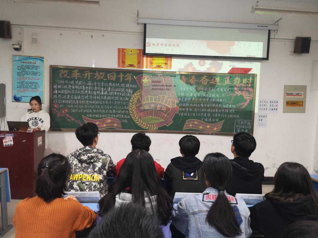 2018年11月1日下午7:00——8:00,beat365中文官方网站beat365中文官方网站在龙子湖校区一号教学楼举行了以“改革开放四十年,青春奋进正当时”为主题的团课,本次团课由大一全体班级参加!
