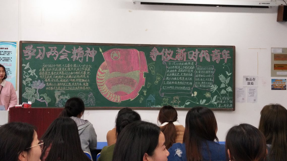吹面不寒杨柳风,阳春三月,在这两会召开之际,2018年3月15日下午 2:30---4:20,beat365中文官方网站在龙子湖校区2号教学楼举行了以“学习两会精神 ,争做新时代青年”为主题的团课班会。本次团课,由大一全体班级参加。
