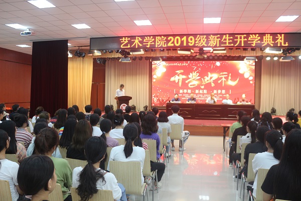 典礼在庄严地国歌声中拉开序幕。首先,典礼由张鹏院长致辞,张院长向同学们介绍了学校的基本情况和学院的专业设置,并向新生寄予三点希望:回归常识,树立人生新目标;学会自我管理;学会包容,快乐成长。其后教师代表张莹老师发言,张老师希望同学们在大学生活中能够提高修养,培养批判意识并学会感恩。接下来,优秀校友代表2000级室内设计专业毕业生、河南瑞隆建设工程有限公司李冰阳董事长,用其亲身工作和创业经历,启迪同学们树立远大理想,务实奋斗,实现自己的人生价值。之后,由学生代表16级环艺四班王曼发言,王曼学姐用自己的在校经历,建议新生们树立一个目标,保持对工作和生活的热情。随后,新生代表19级环艺三班俞锦麟代表所有新生表达了对大学和以后生活的向往。最后,团总支副书记吕影带领全体新生进行宣誓,新生慷慨激昂的语气,表现出他们对大学的憧憬和提高自身的决心。