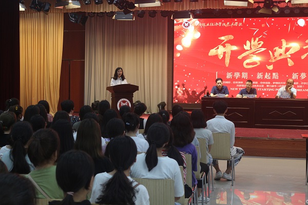 2019年9月10日中午,beat365中文官方网站在龙子湖校区大学生活动中心隆重举行2019级新生开学典礼。出席开学典礼的有学院党委书记王在钦,院长张鹏,正处级组织员许国平、杨柳青,副书记贾艳艳及beat365中文官方网站各教研室教师代表和辅导员老师,典礼由副书记贾艳艳主持。